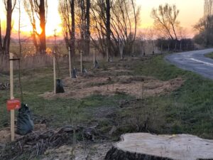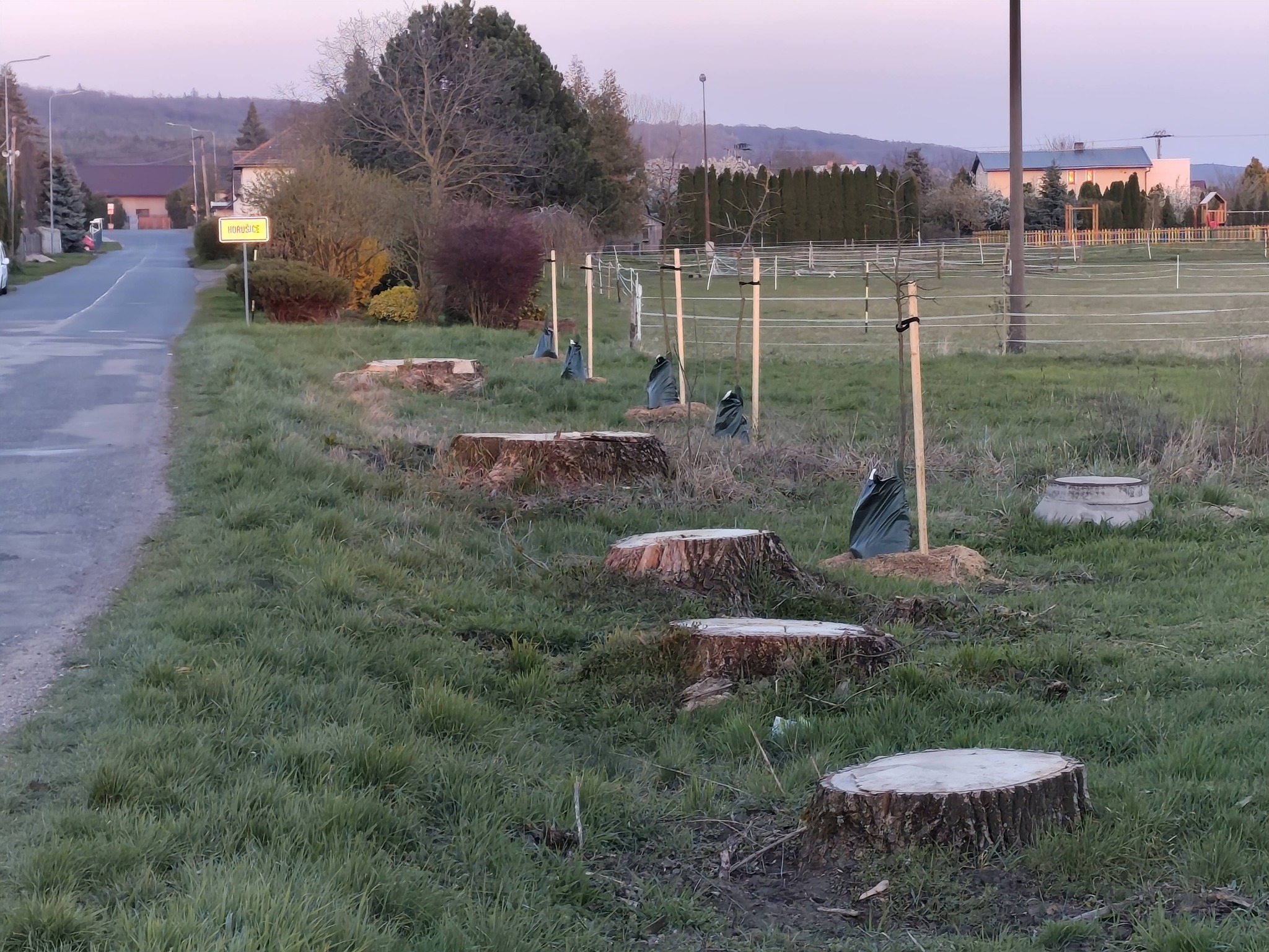 Článek k výsadbě: https://www.nadacecez.cz/cs/pro-media/aktuality/puvodni-topolovou-alej-nahradily-duby-a-ovocne-stromy-obec-na-jejich-vysadbu-ziskala-grant-od-nadace-cez-232718